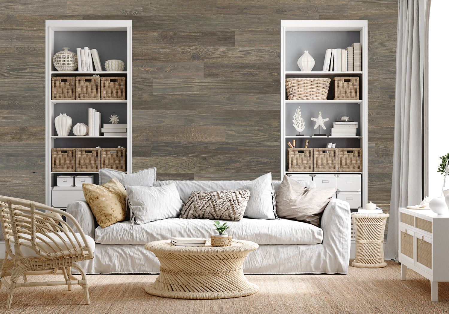 Weathered Gray Pine Barnwood style wall planks exude a sense of understated elegance with muted tones and subtle variation. These DIY peel and stick planks come with 3M adhesive backing, making them simple to install without the need for specialized tools or expertise.