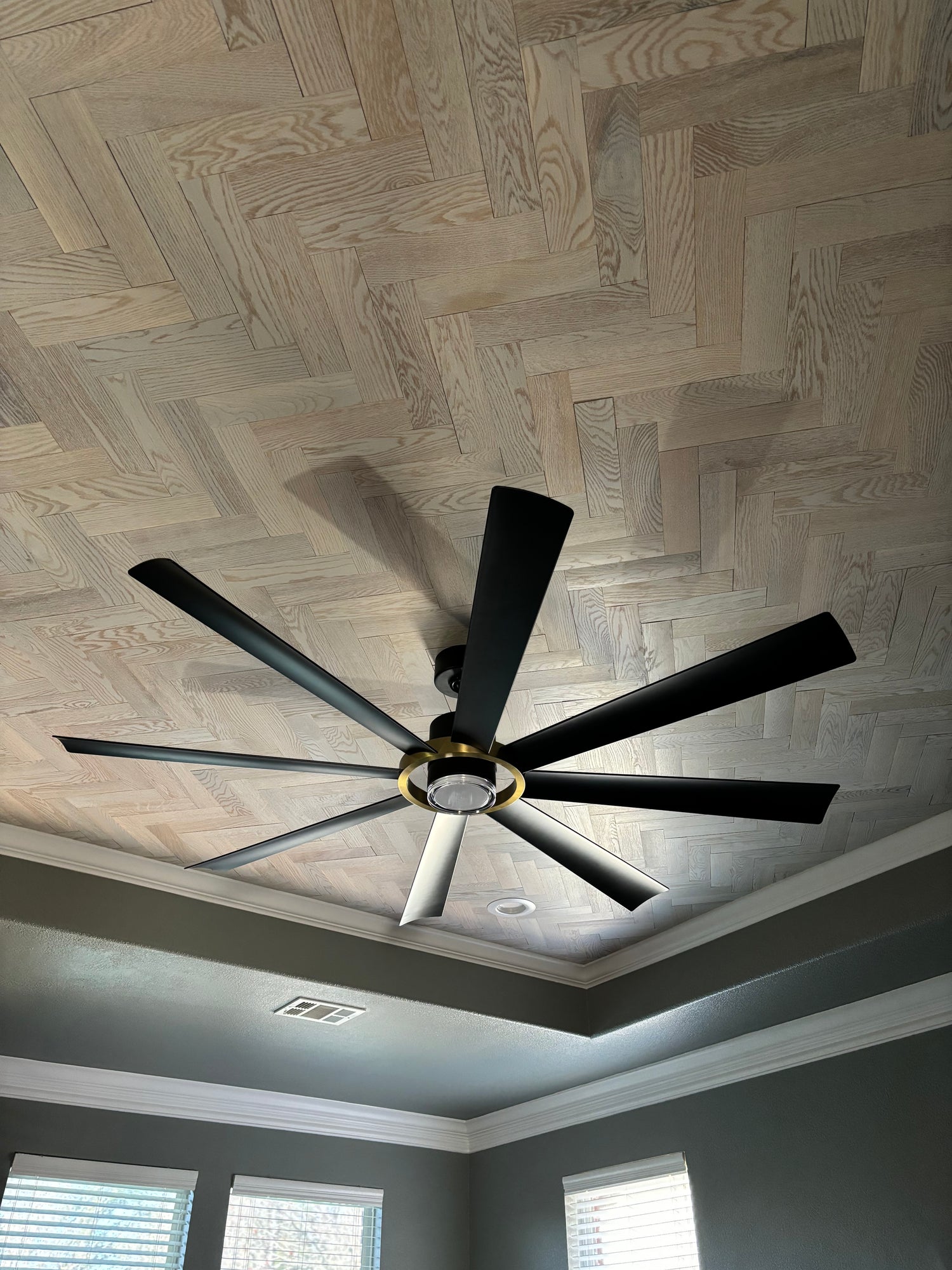 Yes, Timberchíc works and looks great on ceilings! Just remember a clean dry smooth surface is best for installing Timberchic!