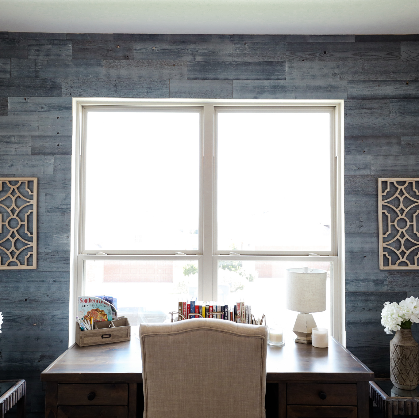 Introducing Fog Lake, a stunning contemporary peel and stick plank. With its weathered moody look, this plank is perfect for anyone who loves the charm of barnwood but wants a smoother wipeable surface.