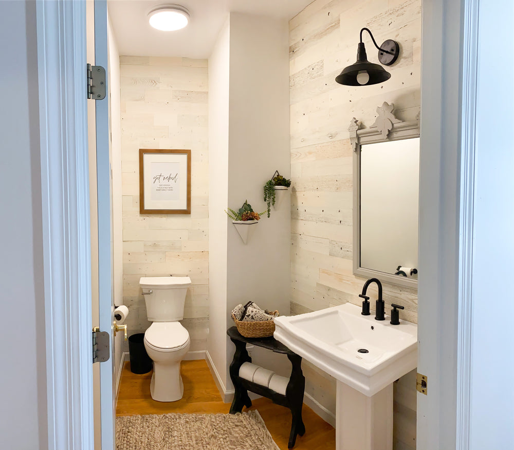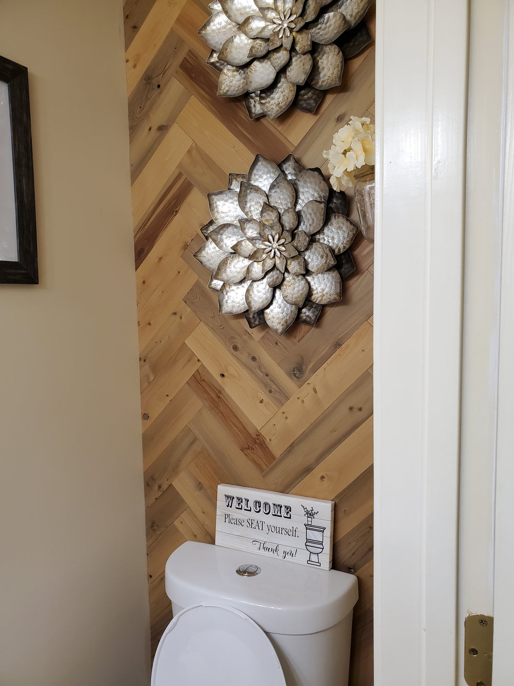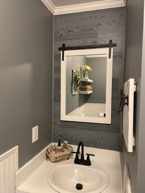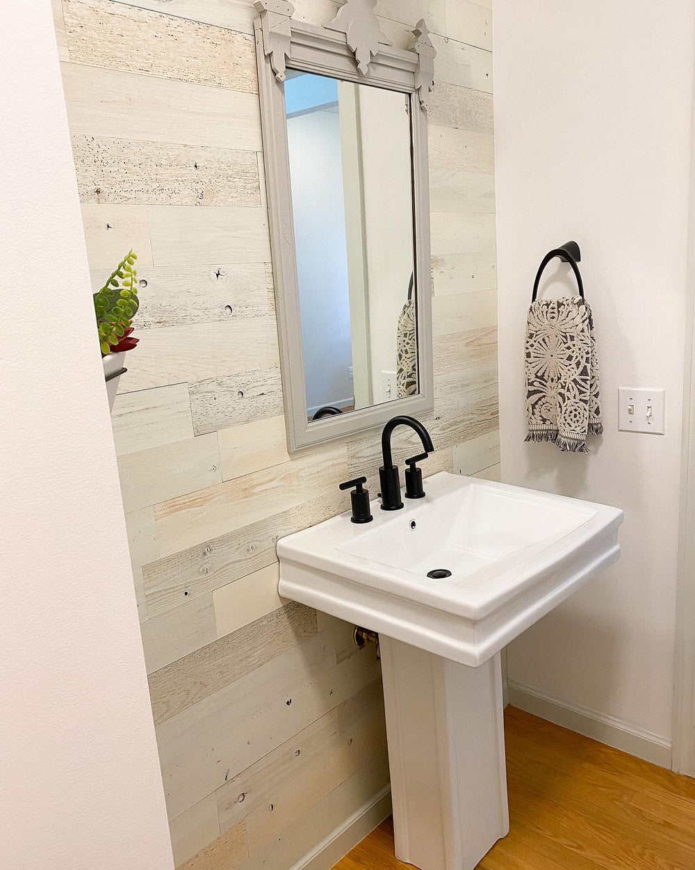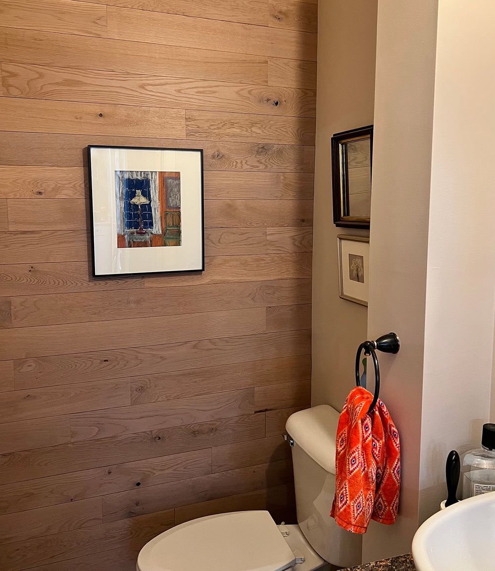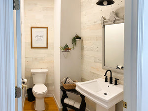 Our bathroom wood planks are not only beautiful but also practical and durable, designed to hold up to bathrooms with less humidity such as half baths. The rich textures and varied colors of our wood planks make them the perfect choice for a bathroom accent wall, instantly elevating the aesthetic of the space. Each plank is crafted to showcase the unique grains and inherent beauty of the wood, ensuring that no two walls are exactly alike.
