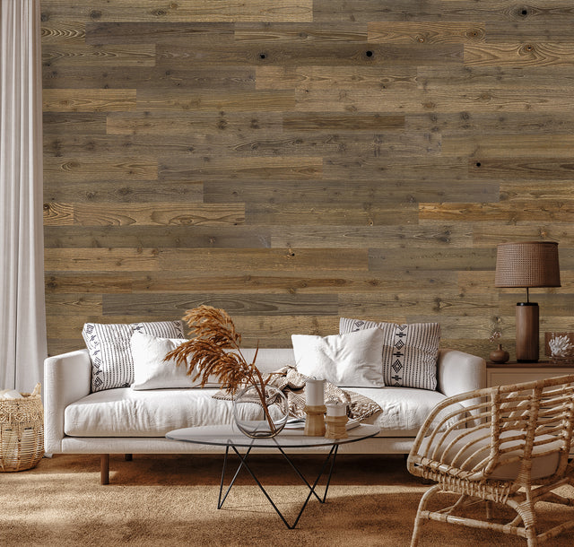 Introducing our spruce and fir hand-hewned Barnboard planks. Add depth and visual interest with this classic reclaimed chocolate brown Barnwood style plank. This wood wall application is not only beautiful but easy to install thanks to the 3M peel and stick backing.